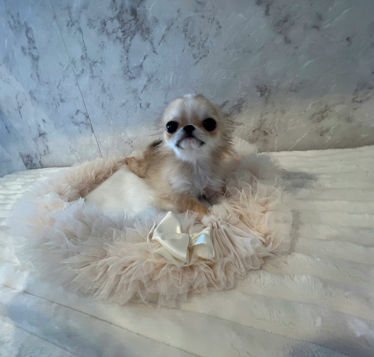 こんにちはTIARA PETSです🐶💕 垂れ目の大きな瞳 & ぺたんこのお鼻 & アップルヘッドをした可愛いお顔立ちのチワワ 男の子のご紹介です🐾✨ TIARA PETSでのお名前はやまと君🧸⭐️ 垂れ目で愛くるしい瞳 & ぺたんこのお鼻 & アップルヘッドをした可愛いお顔立ちの男の子です✨ 毛色はフォーン & ホワイト🌟 手脚も短めの体型をしています! 毛吹きも良くふわふわな毛質をしています♫☆ 生後6ヶ月半の現在の体重は1.15Kg (◕‿◕✿) 人懐っこく大人しい性格のBabyちゃん🍼 ごはんもよく食べてくれていて、手も掛からず健康状態良好です🎶 お友達の子犬ちゃんたちとすくすく成長中🌱 ⭐️父 3項目遺伝子検査の結果 クリア ⭐️獣医師での健康診断済み ⭐️2回目7種混合ワクチン接種済み ⭐️ケンネルコフワクチン投与済み ⭐️マイクロチップ装着登録済み ⭐️狂犬病予防ワクチン接種済み オーナー様募集中です🌟 お迎え・ご見学のご希望は公式LINEよりお気軽にお問い合わせください☺️